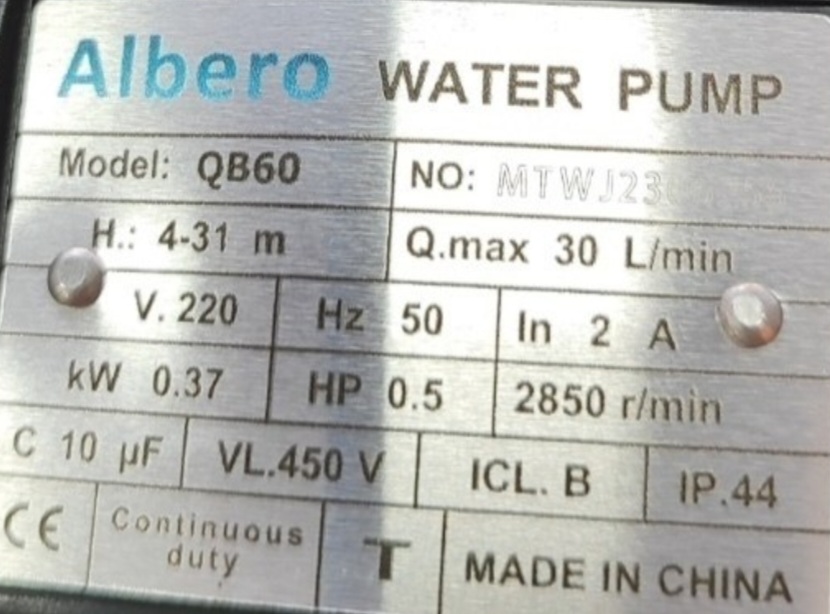 جنس : بدنه پمپ چدن ، پروانه برنج، سیم پیچی مس،شفت استیل ۴۵ ،پوسته موتور آلومینیوم